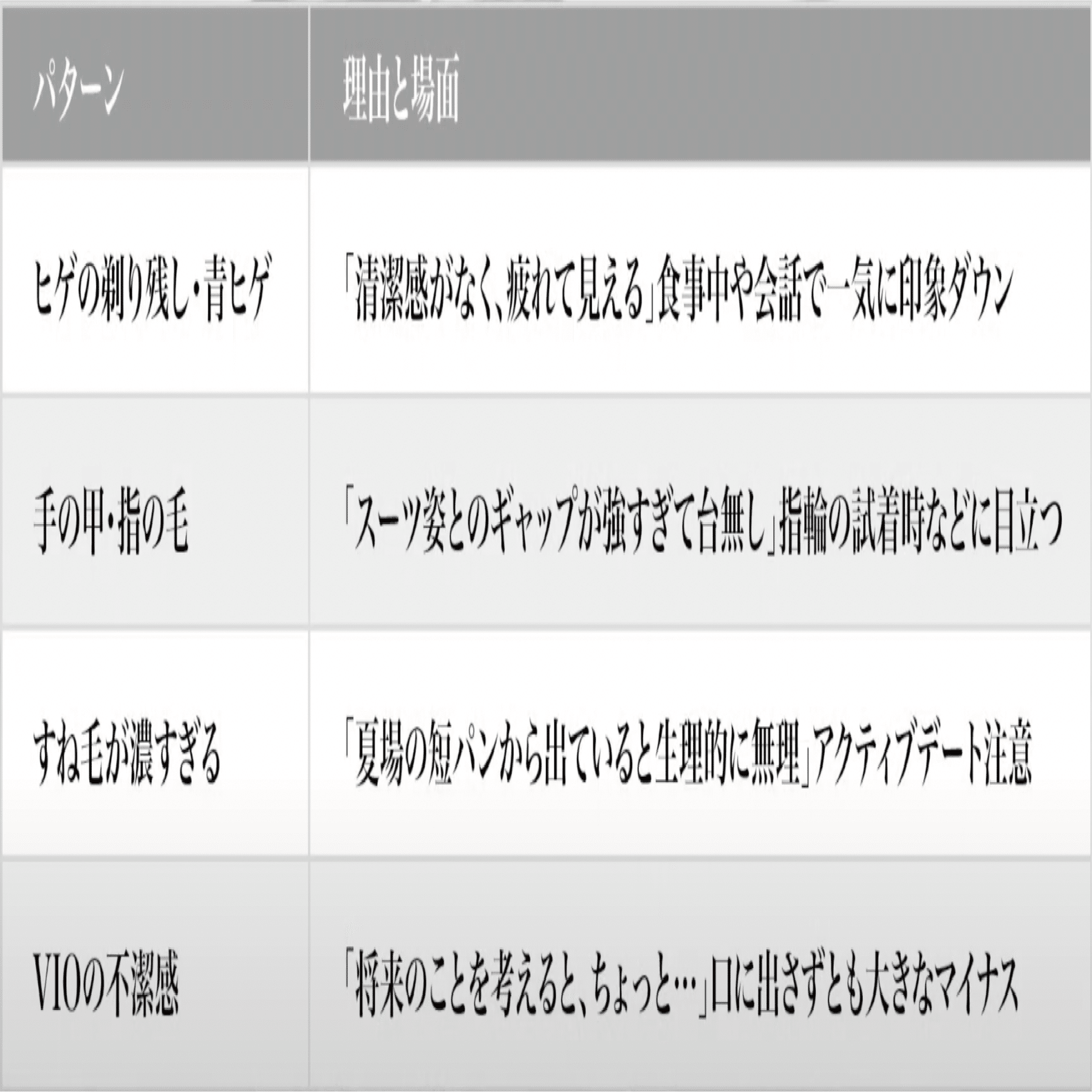 その中でもムダ毛は、「自己管理力」や「人に対する配慮」の象徴として見られています。