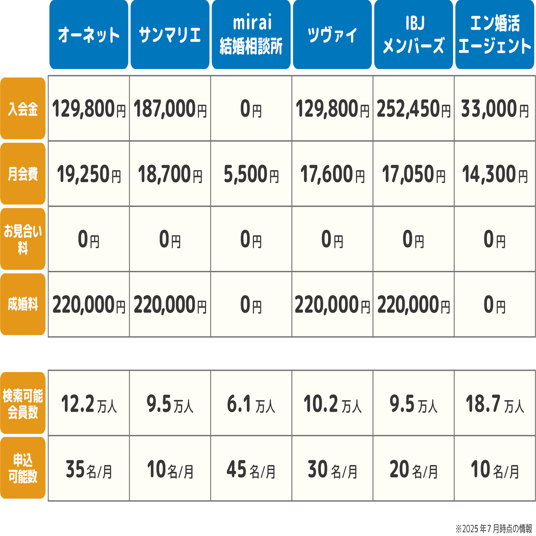 【忖度なし】主要結婚相談所6社の料金・メリット・デメリット比較【2025年版】